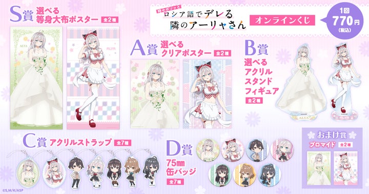 新規描き下ろしイラストを含む、ウェディングドレスや猫耳メイド姿のアーリャが描かれた豪華賞品が盛りだくさん。